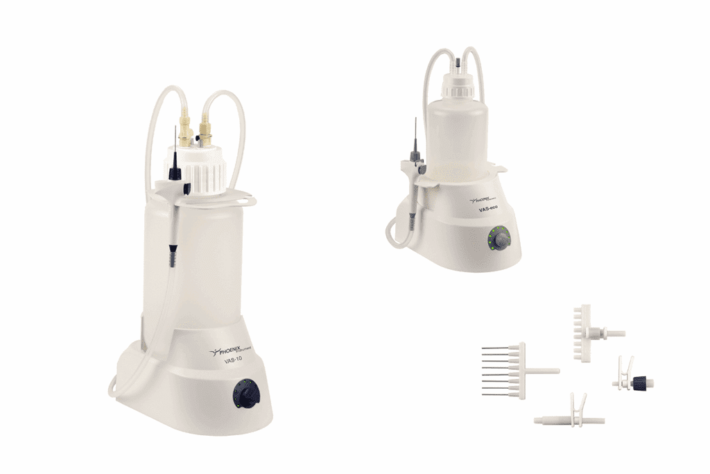 Removing liquids from cell cultures or ELISA plates is a common step that can be time-consuming. The vacuum aspiration systems of Phoenix Instrument allow you to remove excess liquid quickly, safely, and accurately in many conditions. The various nozzle adapters ensure that even multi-well plates are emptied in a snap.